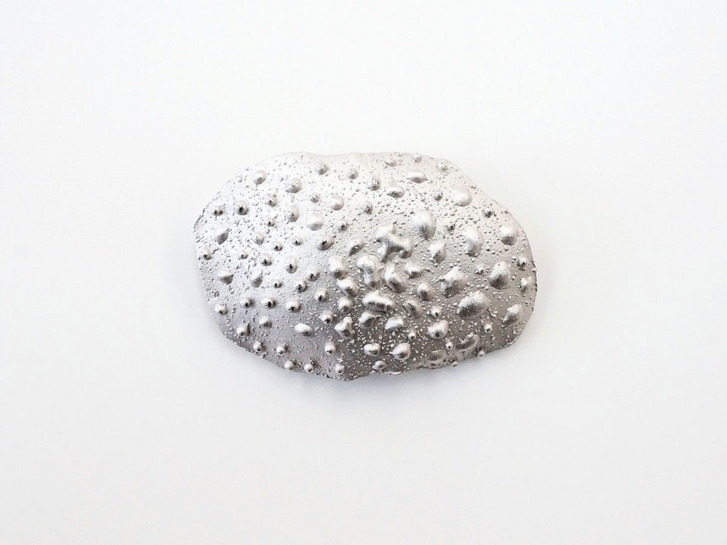 ブローチ金具はてっぽうタイプを使っています。こちらの金具は、つまみをスライドさせたら筒の中に針の先端がすっぽり収まります。スライドさせたつまみを元の場所にカチッと戻せば、これで安心安全です。しっかり針が収まっていれば落とす心配は無くなります。慣れると小気味良くてっぽう(筒)の開閉が出来るでしょう。
