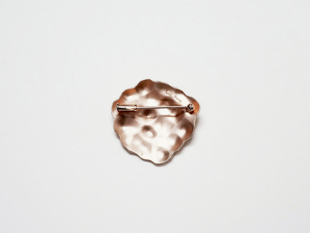 ブローチ金具はてっぽうタイプを使っています。こちらの金具は、つまみをスライドさせたら筒の中に針の先端がすっぽり収まります。スライドさせたつまみを元の場所にカチッと戻せば、これで安心安全です。しっかり針が収まっていれば落とす心配は無くなります。慣れると小気味良くてっぽう(筒)の開閉が出来るでしょう。