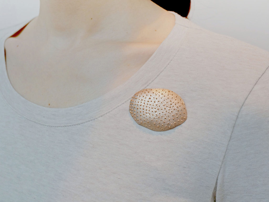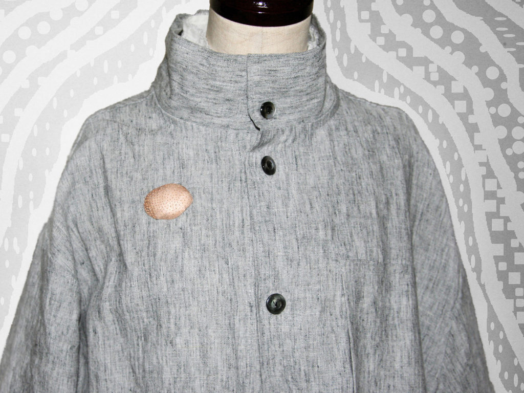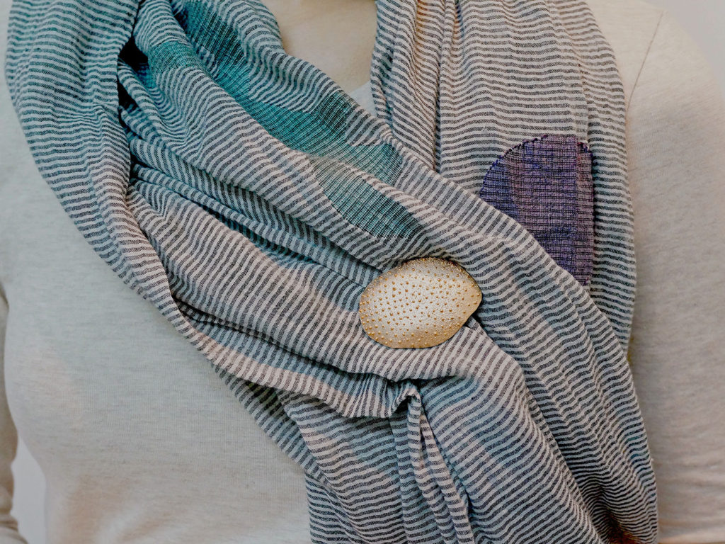 ブローチ金具はてっぽうタイプを使っています。こちらの金具は、つまみをスライドさせたら筒の中に針の先端がすっぽり収まります。スライドさせたつまみを元の場所にカチッと戻せば、これで安心安全です。しっかり針が収まっていれば落とす心配は無くなります。慣れると小気味良くてっぽう(筒)の開閉が出来るでしょう。