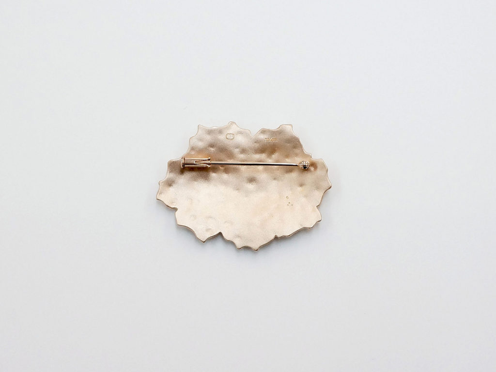ブローチ金具はてっぽうタイプを使っています。こちらの金具は、つまみをスライドさせたら筒の中に針の先端がすっぽり収まります。スライドさせたつまみを元の場所にカチッと戻せば、これで安心安全です。しっかり針が収まっていれば落とす心配は無くなります。慣れると小気味良くてっぽう(筒)の開閉が出来るでしょう。