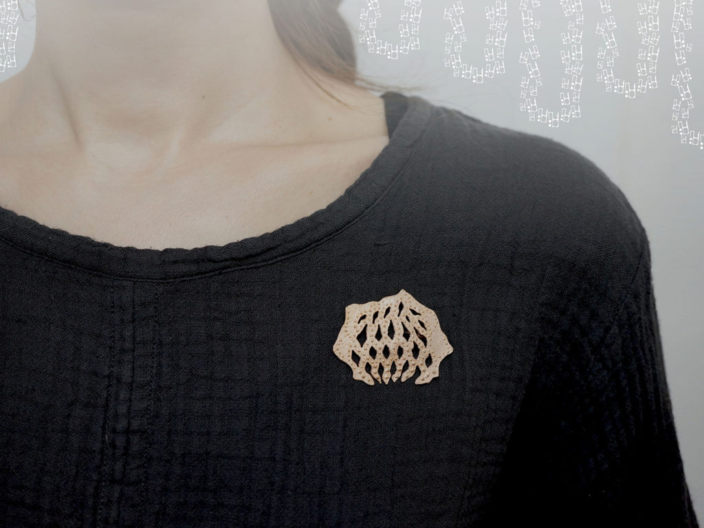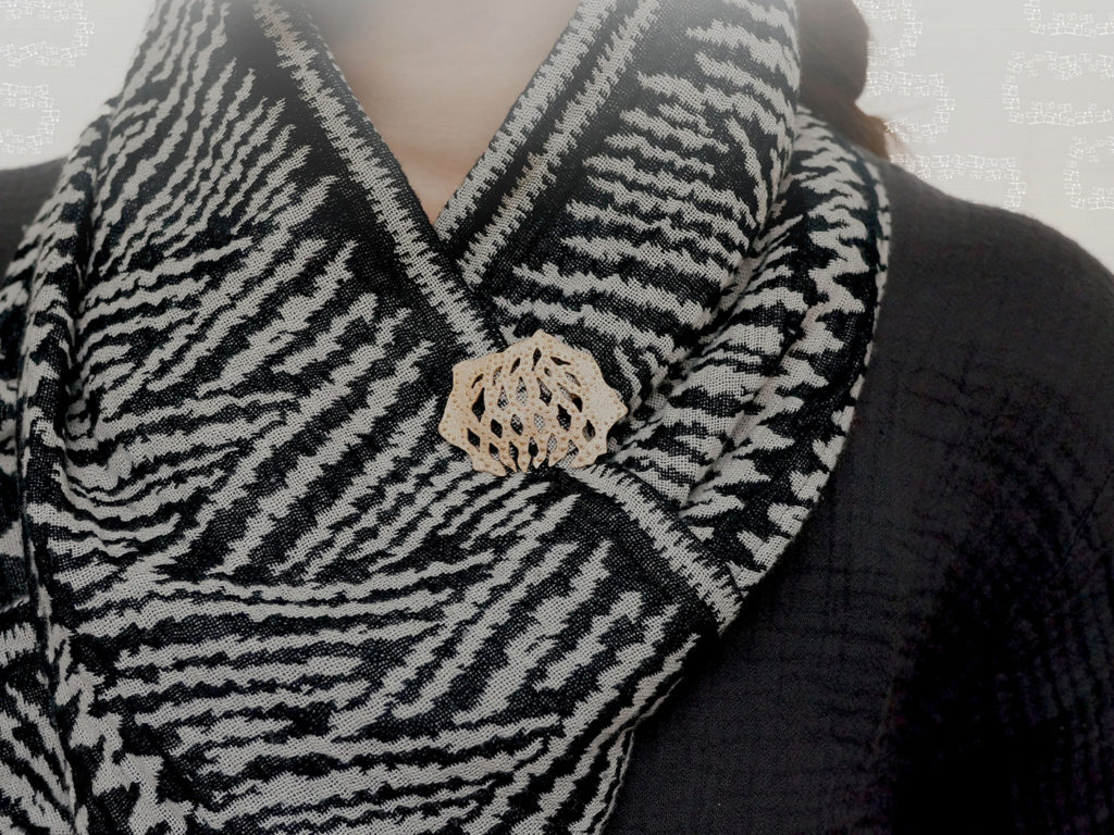 ブローチ金具はてっぽうタイプを使っています。こちらの金具は、つまみをスライドさせたら筒の中に針の先端がすっぽり収まります。スライドさせたつまみを元の場所にカチッと戻せば、これで安心安全です。しっかり針が収まっていれば落とす心配は無くなります。慣れると小気味良くてっぽう(筒)の開閉が出来るでしょう。