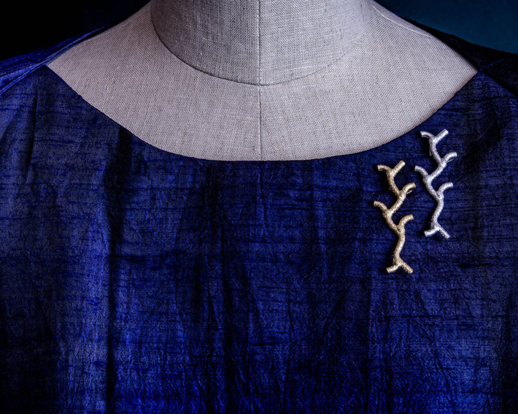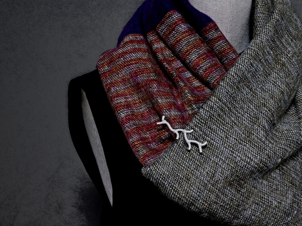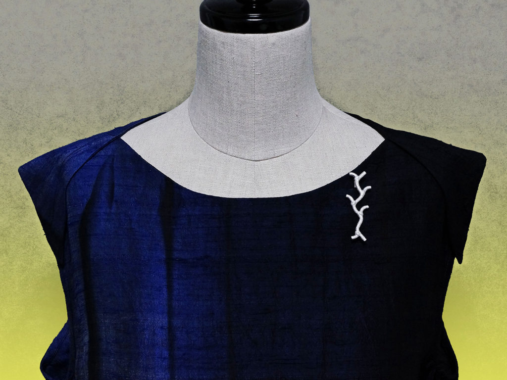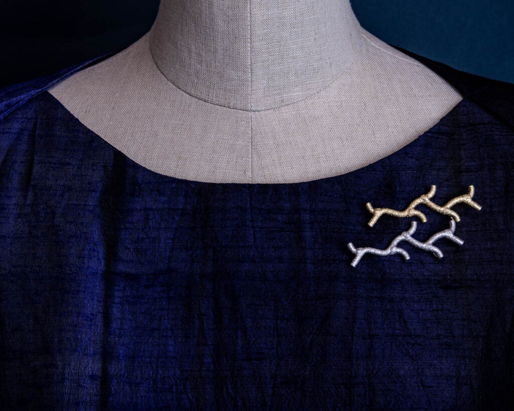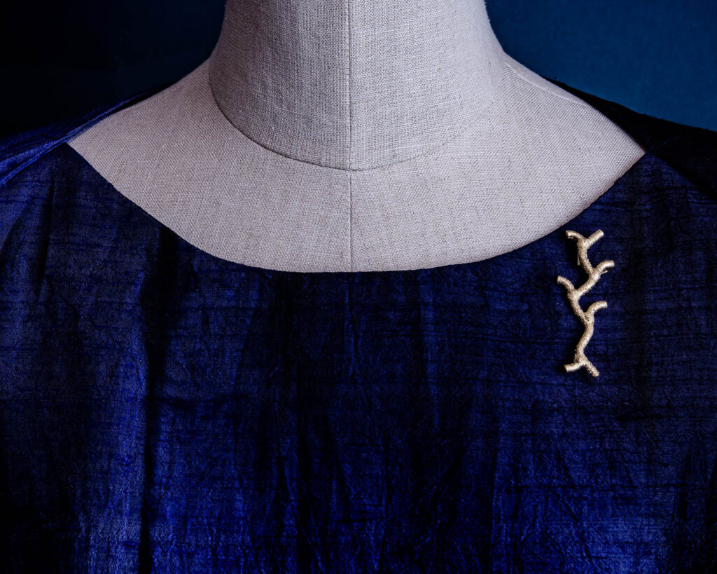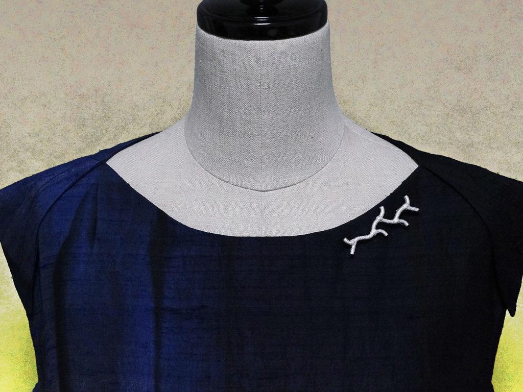 ブローチ金具はてっぽうタイプを使っています。こちらの金具は、つまみをスライドさせたら筒の中に針の先端がすっぽり収まります。スライドさせたつまみを元の場所にカチッと戻せば、これで安心安全です。しっかり針が収まっていれば落とす心配は無くなります。慣れると小気味良くてっぽう(筒)の開閉が出来るでしょう。