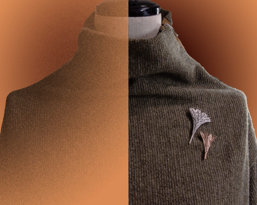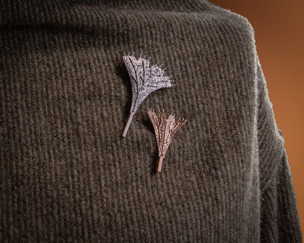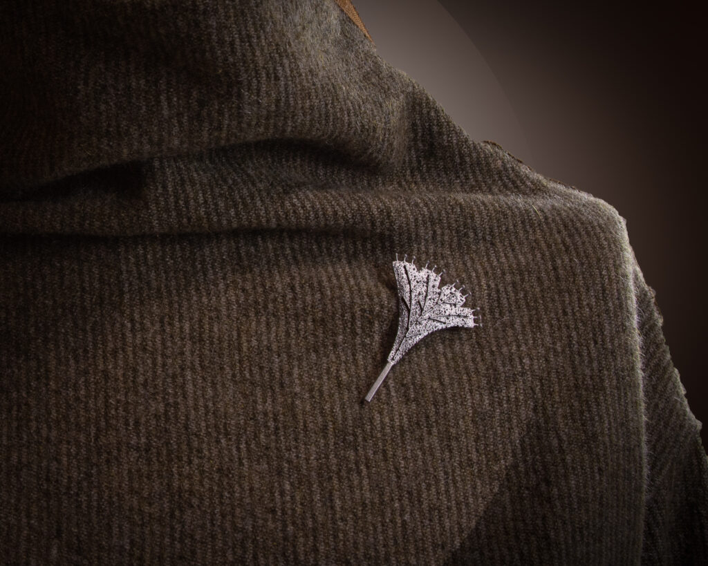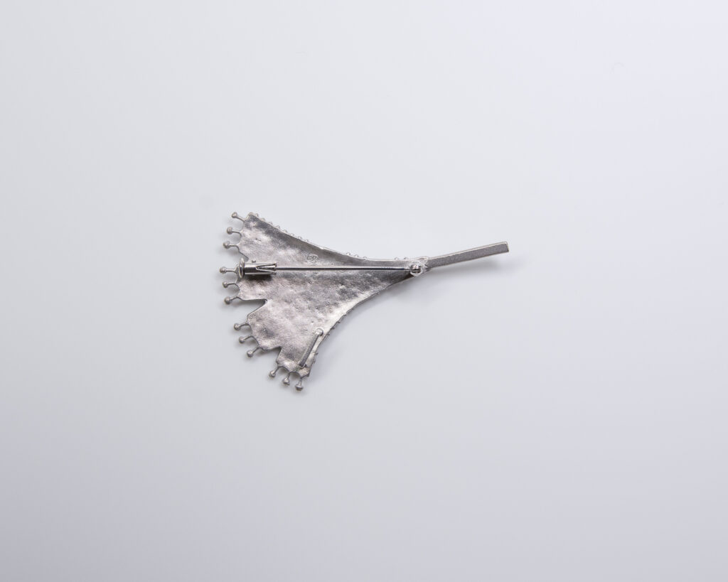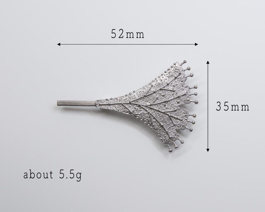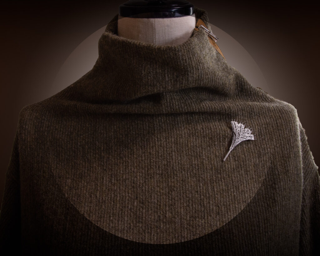 ブローチ金具はてっぽうタイプを使っています。こちらの金具は、つまみをスライドさせたら筒の中に針の先端がすっぽり収まります。スライドさせたつまみを元の場所にカチッと戻せば、これで安心安全です。しっかり針が収まっていれば落とす心配は無くなります。慣れると小気味良くてっぽう(筒)の開閉が出来るでしょう。
