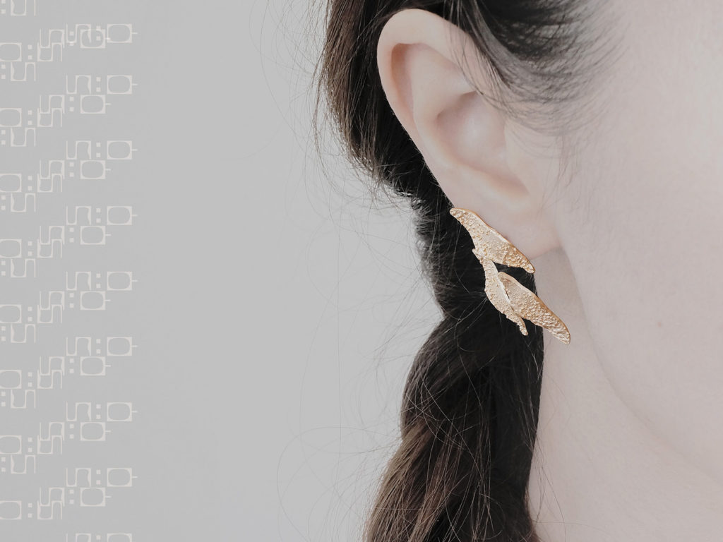 非対称なデザインがセットのピアスです。色を違えたりしても面白いですね。こちらはピアスのみの販売で、クリップイヤリングはありませんのでご了承ください。
