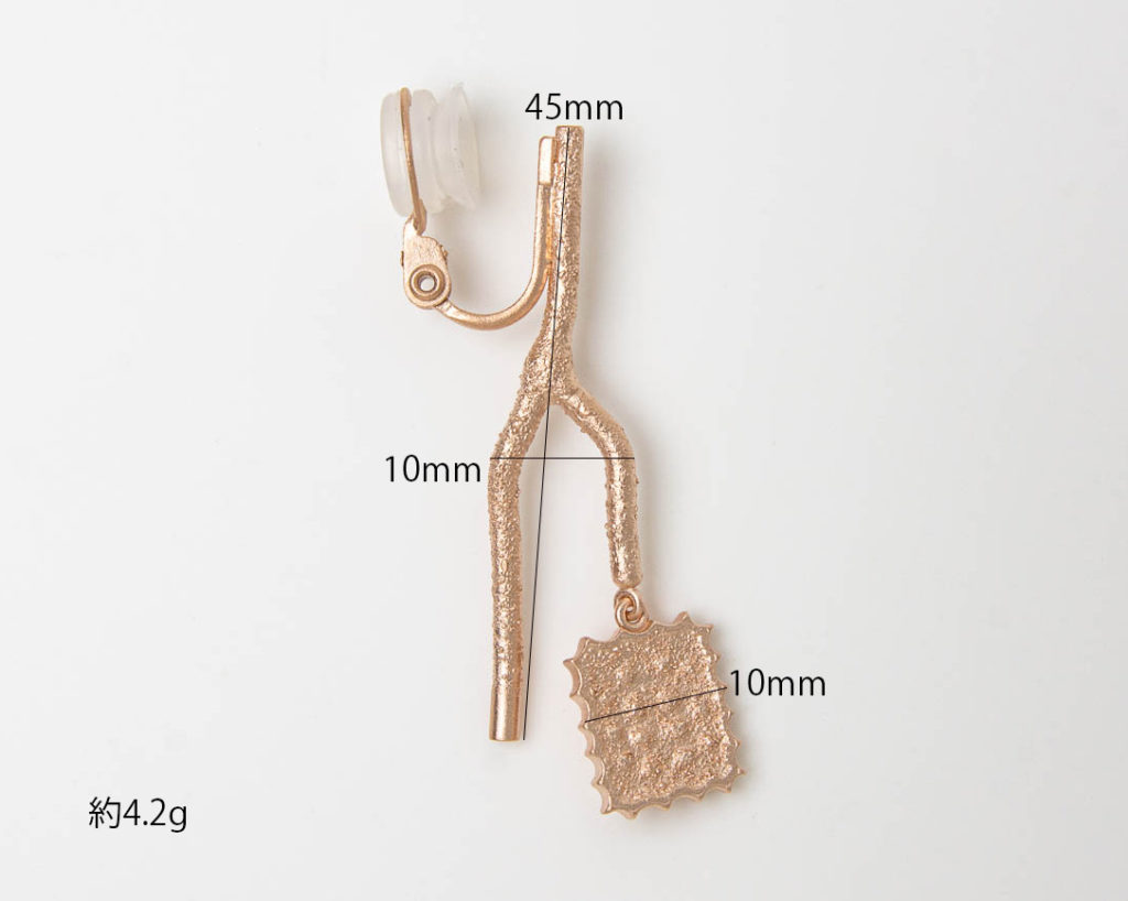 クリップイヤリング:イヤリング金具は微調整タイプで、耳たぶに挟んで指でキュッと絞めるだけです。長時間つけても痛くならないと好評ですが、このタイプは長く使っていくとだんだんとかしめが緩くなる弱点もあります。なるべくクリップを全開せず耳たぶの厚みくらいにだけ開いた状態で装着してください。