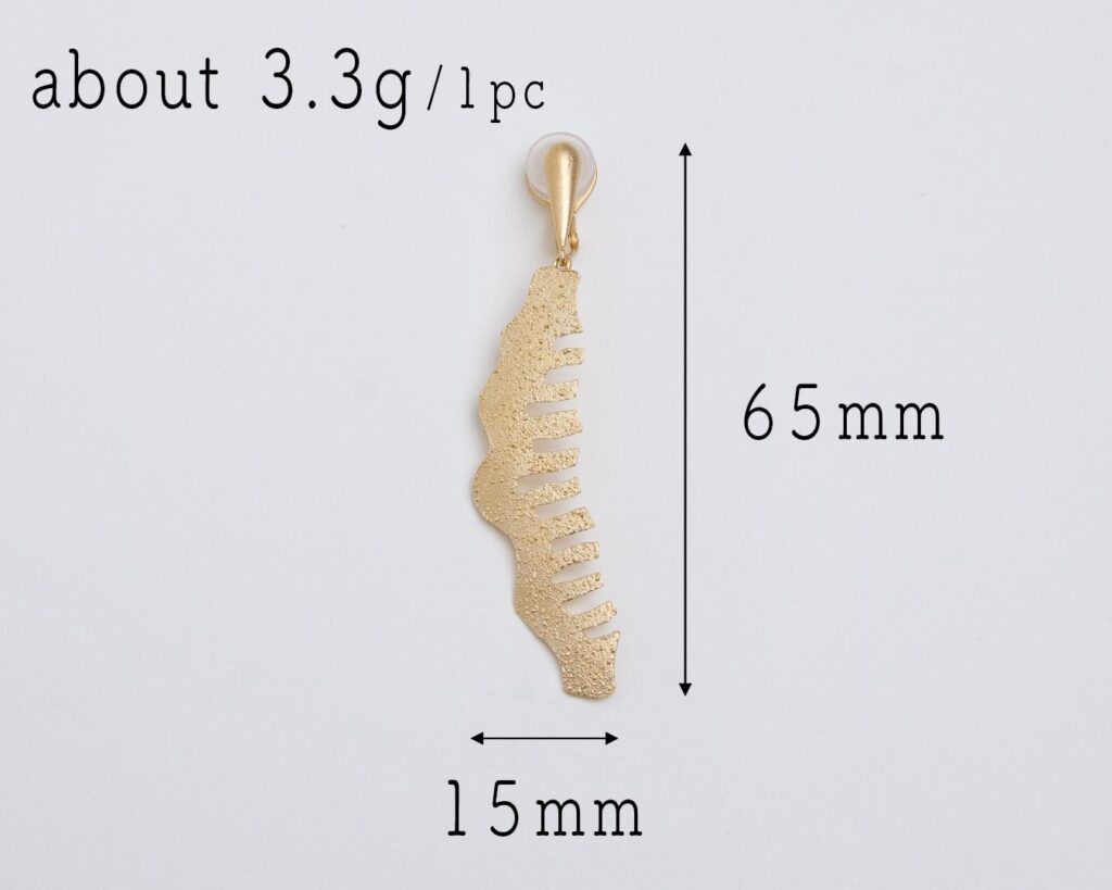 クリップイヤリング:イヤリング金具は微調整タイプで、耳たぶに挟んで指でキュッと絞めるだけです。長時間つけても痛くならないと好評ですが、このタイプは長く使っていくとだんだんとかしめが緩くなる弱点もあります。なるべくクリップを全開せず耳たぶの厚みくらいにだけ開いた状態で装着してください。ピアスと違いイヤリングの場合はチャームの取り外しが出来ません。